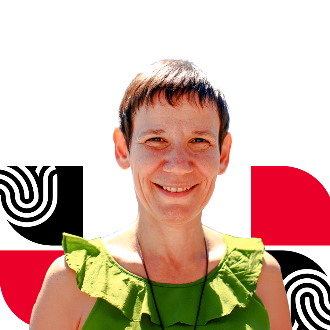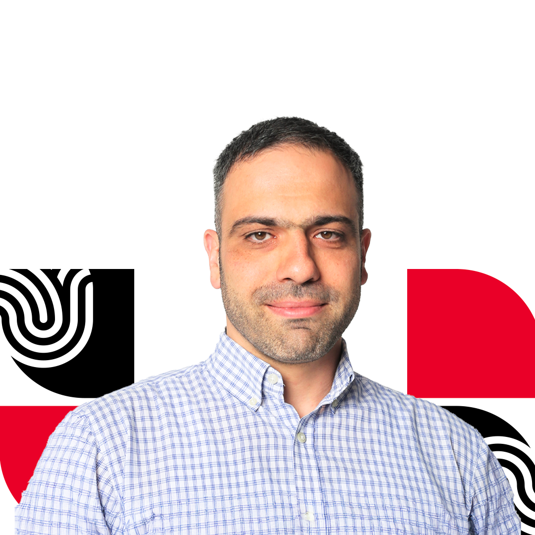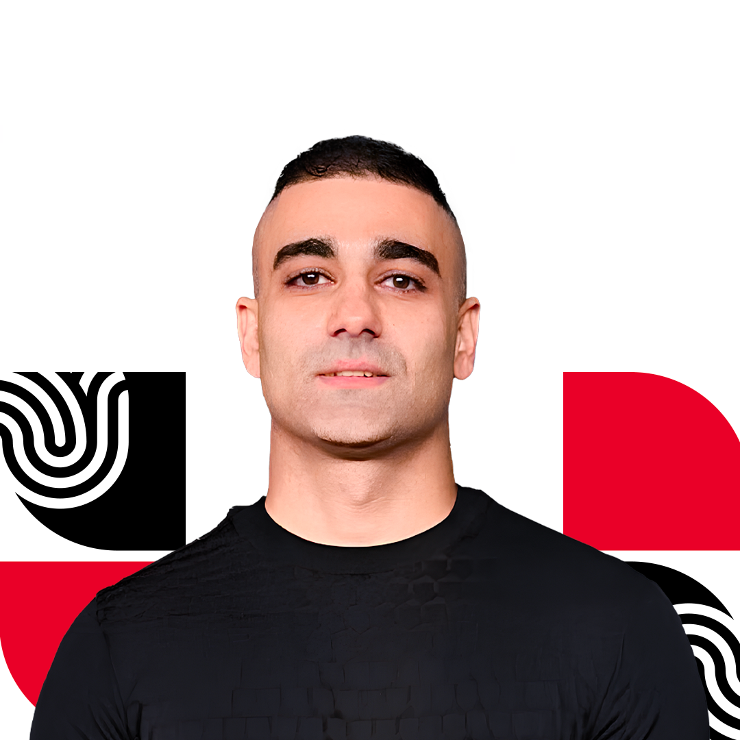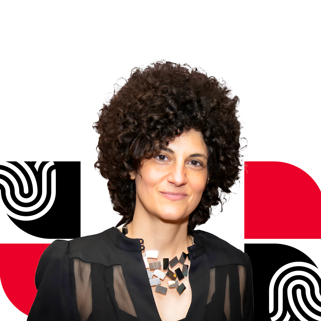 Our logo explores Hybrid Identities by dividing the figure into four parts. The black quadrants feature fingerprint-like patterns, representing core identity, while the red quadrants reflect different roles and expressions of the same person.